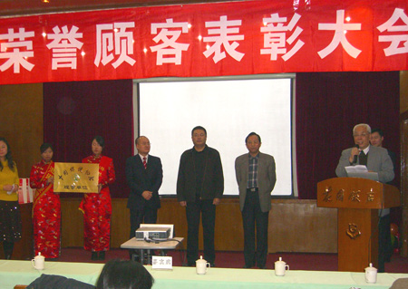 本站报道2006年12月31日上午9时,新近被中国保健协会接纳为理事单位的万源新世纪集团在北京花园饭店举办了第十三期荣誉顾客表彰大会。中国保健协会潘学田常务副理事长,周邦勇、李萍副秘书长及办公室牛忠俊主任参加了大会并出席了中国保健协会理事单位授牌和颁发证书仪式。