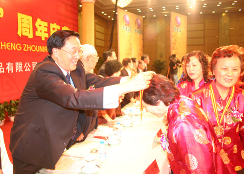大会由中国保健协会徐华锋秘书长主持,春芝堂生物制品有限公司王爱庭总裁向大会作周年工作报告,王爱兴董事长宣读百年工程推广委员会表彰决定,一批为百年工程作出贡献的先进集体、推广功勋和功臣们获得荣誉奖章。