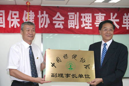 7月18日,协会为新时代健康产业(集团)有限公司举行了隆重的中国保健协会副理事长单位授牌仪式,董事长殷鹤声同时当选为中国保健协会副理事长。协会理事长张凤楼、副理事长栾成章,秘书长徐华锋,副秘书长王中,原国家食品药品监管局副局长任德权,新时代公司领导、部分员工和国珍专营店代表200余人参加了授牌仪式,仪式由黄永刚总经理主持。在举行授牌仪式的同时,新时代健康产业(集团)有限公司也迎来了十一周年生日。