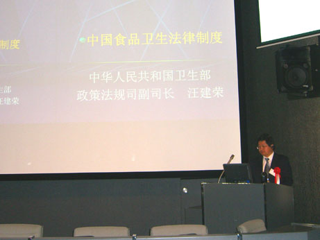 国家卫生部政策法规司汪建荣副司长在中日健康机能食品高峰论坛上演讲