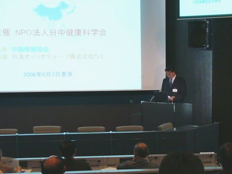 参加中日健康机能食品高峰论坛的还有日方专家学者和企业家近50多名。在论坛上中国保健协会会长张凤楼致开幕词。日本营养学会会长神奈川县立保健福祉大学教授做了关于“日本与营养相关的法规制度的现状及展望”的演讲,国立健康、营养研究所食品保健机能项目负责人山田和彦做了关于“日本保健机能食品制度” 的演讲。御荣之水女子大学教授、生活环境研究中心主任近藤和雄做了关于“日本机能性食品研究开发最新动态”的演讲。卫生部政策法规司汪建荣副司长介绍了“中国保健食品卫生法律制度”;国家食品药品监督管理局严卫星副处长介绍了“中国保健食品注册管理方面的法律制度”,(SFDA)审评中心周素娟审评员介绍了“中国保健食品技术审评规范”。这六位专家的发言受到与会者热烈欢迎。日本电视台对中日高峰论坛进行转播。