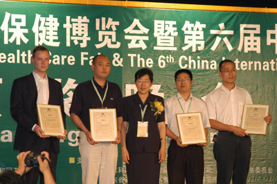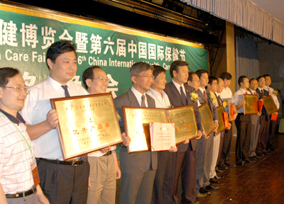 本站报道第六届中国国际保健博览会暨第六届中国国际保健节颁奖晚会于6月10日晚在广州中国大酒店隆重举行。全国人大原副委员长、中国红十字会会长彭佩云;全国政协副主席王文元;民盟中央副主席、全国政协常委、中国社会经济化交流协会会长罗涵先;中央纪律检查委员会委员、中国保健协会理事长、第六届中国国际保健博览会组委会主席张凤楼;中国保健协会常务副理事长、第六届中国国际保健博览会组委会副主席潘学田;国家食品药品监督管理局保健食品审评中心主任黄建生;中国保健协会各领导出席会议。海内外参展企业代表近千人齐聚一堂,共度盛会。