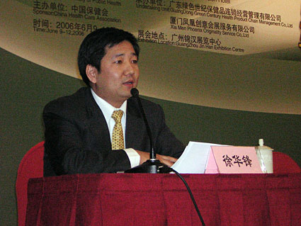 本站报道  1月18日下午,第六届中国国际保健博览会暨第六届中国国际保健节新闻发布会在北京保利大厦举行。此届盛会由中国保健协会主办,广东绿色世纪保健品连锁经营管理有限公司、厦门凤凰创意会展服务有限公司承办,将于2006年6月11日-12日在广州锦汉展览中心举办。中国保健协会理事长张凤楼、副理事长潘学田等领导及众多企业代表、媒体记者出席了此次发布会。