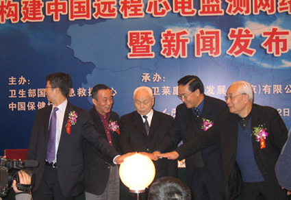 为解决我国“第一大病症”——心血管疾病对国民个体健康的威胁,降低其在我国的发病率、复发率、致残率、致死率,提高全民的保健意识,把保健和治疗有机的结合起来,1月12日,由中国卫生部国际紧急救援中心、中国保健协会共同倡导并发起,中卫莱康科技发展(北京)有限公司提供全程技术服务的中国远程心电监测网络体系正式在北京人民大会堂启动。
