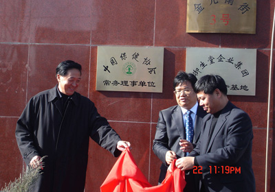 中国保健协会理事长张凤楼、良乡区委副书记高彦杰、 北京御生堂生物工程有限公司董事长李清江共同为企业揭牌