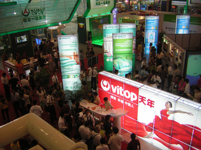 “谁吆喝的响,谁的产品就能吸引更多目光”似乎已经是本届保健节心照不宣的宣传方式。“好酒也怕巷子深”,对于保健品这个特殊领域来说,吸引消费者的眼球并让他们了解产品的保健功能是各家企业的首要工作。大中型企业“戏唱的欢”的同时,大多数的小企业也铆足劲头抢“眼球”,也恰如其分地反映了中国保健品市场群雄争霸的热闹场面,一定数量的大企业虽然已拥有绝对优势,并不断把自己的品牌做大,但是在保健品市场这个风云变幻的舞台上是否能稳坐江山,还要经受住市场竞争的各方面考验。这是本次展会的第一大看点。