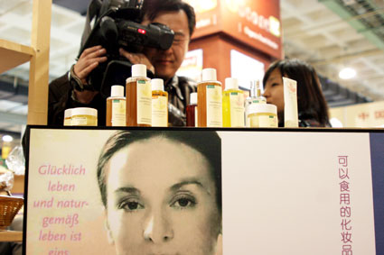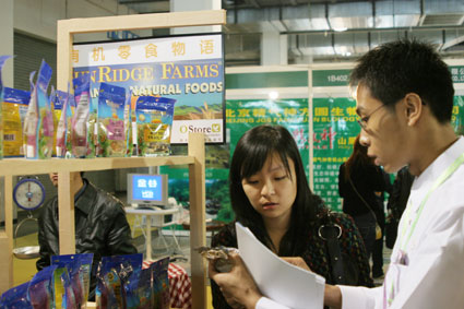 欧食多国际贸易有限公司打造的“有机零食物语”别具特色,是最吸引观众眼球的展位。它以超市的形式推出,其商品大多是国外有机食品企业生产的,价格虽然略高,但其无论从包装、制作工艺和口味,都是国内产品所无法比拟的。记者在其展出的商品中看到一种“可以食用的化妆品”,很多女士对此非常感兴趣,现场向商家咨询并购买。