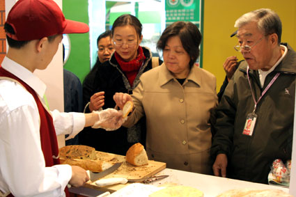 参观者对法国有机面包最有兴趣,纷纷品尝