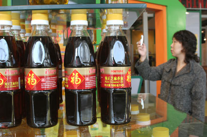 福临门占据最大展位宣传自己的食用油产品
