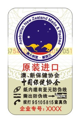 随着中国经济的快速发展,人们的健康意识不断提高,保健相关产品的市场呈现快速发展的良好势头。为防止澳大利亚和新西兰的相关保健产品进入中国后,被个别不法厂家和经销商冒充在中国市场进行销售和不实的广告宣传,影响澳洲和新西兰保健产品的信誉和形象,中国保健协会联合澳大利亚、新西兰保健协会,共同推出澳大利亚、新西兰原装进口健康产品防伪标识的推广项目。