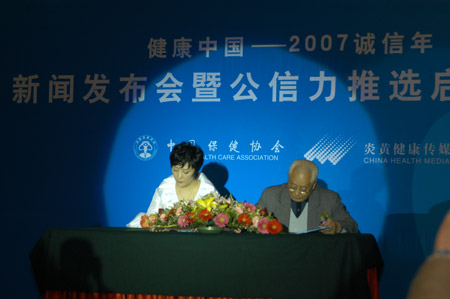 本站报道 2007年4月7日,一项旨在建立保健品行业诚信体系,扬优抑劣净化市场环境,重塑中国保健行业形象,促进我国保健行业健康有序发展的大型主题公益活动“健康中国——中国保健行业2007诚信年系列活动新闻发布会暨公信力推选启动仪式”在北京隆重召开。卫生部、商务部、国家食品药品监督管理局、国家质量检疫检验总局、国家工商总局等有关领导以及天津天狮、完美(中国)、珠海天年、南京中脉、交大昂立、大连珍奥、烟台新时代等国内外保健行业几十家龙头骨干企业以及二十多家新闻媒体200多人参加会议。