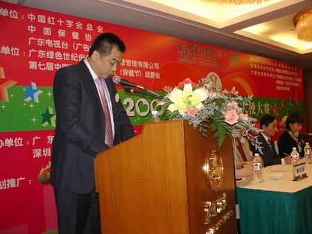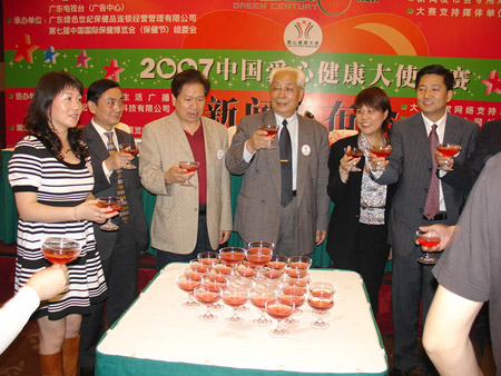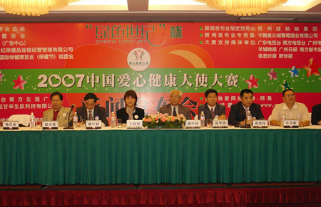 4月17日下午,“绿色世纪杯”2007中国爱心健康大使大赛新闻发布会在广州花园酒店隆重举行。中国红十字总会事业发展部副部长王舒侬;中国保健协会常务副理事长潘学田、秘书长徐华锋;广东绿色世纪保健品连锁经营管理有限公司董事长蒋洪伟、广东省委宣传部姚军毅等领导以及各大媒体和社会各界知名人士出席了会议。