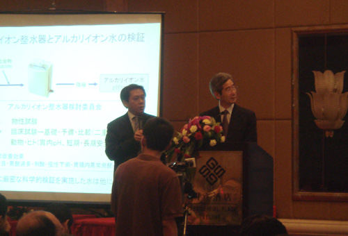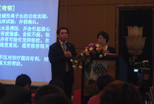 日本机能水方面专家、教授在会上发言 本次会议使中国对日本国在机能水的技术领域的研究应用及政府的重视等方面加深了了解和认识,同时会议确定了中国功能水行业的研究和发展方向,设立了功能水科学实验基地和多项研究课题。可以相信,在不远的将来,中国的饮水保健研究必将获得较大的突破。