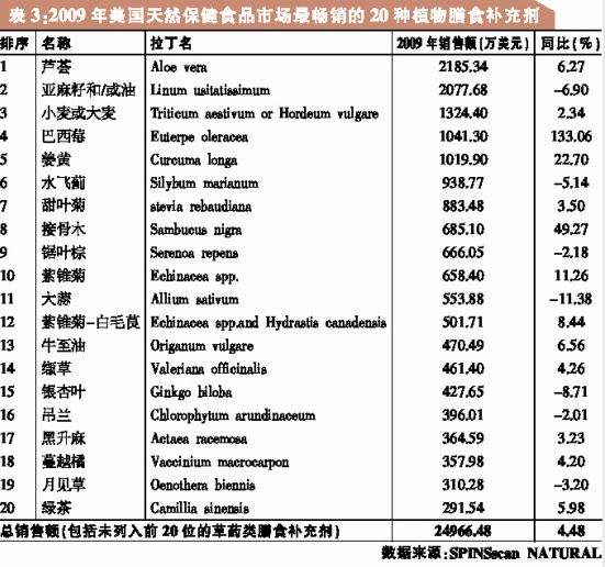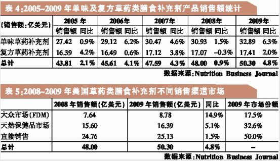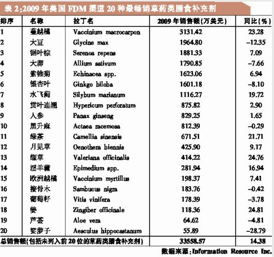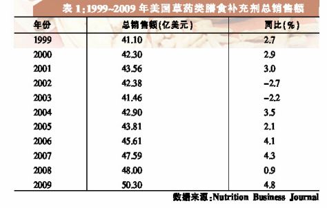 美国消费者在经济衰退中崇尚节俭式保健,从而令该国2009年草药类膳食补充剂市场总销售额冲破50亿美元大关 多家市场咨询公司的数据显示,2009年美国草药及植物膳食补充剂市场销售额出现较大幅度增长。Information Resources Inc.(简称“IRI”)指出,2009年草药类膳食补充剂在主流市场的销售额增幅大约是2008年的两倍;SPINS的报告也指出,2009年植物膳食补充剂在天然保健品商店的销售额出现了一定的增长。Nutrition Business Journal(简称“NBJ”)对多种数据源的数据进行了汇集处理,最后得出结论:在经历2008年的增长低谷后,2009年美国草药类膳食补充剂市场总销售额冲破50亿美元大关,同比增长4.8%。 FDM市场销售额大幅增长 在美国,草药类膳食补充剂的销售可通过多种不同的市场渠道完成。主要渠道包括:天然保健品商店,食品、药品及大众市场(Food,drug,and mass market,简称“FDM”)零售商,大型商场及便利店,邮购、广播及电视直销,网购,网络化或多层次营销公司,卫生工作者(如针灸师、按摩师、自然疗养师和部分传统医师)等。通过汇集各种来源的可用数据,并对相关公司的数据进行建模分析,NBJ最终统计出了美国草药类膳食补充剂的总销售额:2009年总计达50.30亿美元。 根据IRI公司提供的数据,2009年,通过FDM渠道销售的草药类膳食补充剂销售额达3.36亿美元,同比增长约14.4%。然而,该数据并不能代表整个FDM渠道的销售情况,因为该数据并未包括沃尔玛(Wal-Mart)、Sam’s Club,以及其他大型商场和便利店的销售数据。 IRI往年的统计数据显示,通过FDM渠道销售的草药类膳食补充剂,销售额经历了多年的持续下滑,直到2007年才开始出现增长。2007年,美国草药类膳食补充剂销售额同比增长7.6%,2008年同比增长7.2%。IRI公布的2009年数据显示,2009年FDM渠道销售的草药类膳食补充剂销售额实现了两位数的增长(14.4%)。IRI对FDM渠道销售的20种最畅销单味草药类膳食补充剂进行了统计,结果显示,2009年,20种最畅销草药类膳食补充剂品种出现了分化。其中,蔓越橘是2008年FDM渠道销售额居首位的草药类膳食补充剂,2009年,其销售额仍保持领军地位,同比增长23.3%。此外,姜、绿茶和水飞蓟增长迅速,分别同比增长24.81%、19.72%和21.71%。娑萝子销售额则继续呈现较大幅度的下降,降幅达28.79%。 天然保健品市场依然活跃 市场信息咨询公司SPINS也指出,2009年植物膳食补充剂在天然保健品市场的销售额为2.50亿美元,同比增长4.5%。SPINS主要通过众多天然保健品零售商获取膳食补充剂销售额相关的数据。与IRI的数据一样,SPINS的数据也不能代表整个天然保健食品市场的销售情况,尤其是该数据并未将天然食品零售商Whole Foods的销售数据统计在内。 SPINS对天然保健品市场的20种最畅销植物膳食补充剂进行了统计。结果显示,芦荟是2009年天然保健品市场中最畅销的植物膳食补充剂。同时,素有“超级水果”之称的巴西莓销售额再次出现大幅增长。2008年,该产品的销售额增幅为120.5%;2009年,其销售额增幅更是高达133.1%。姜黄是2009年天然保健品市场中另一只增幅较大的品种,销售额同比增长约22.7%。 整体看来,治疗感冒和流感的产品成为2009年美国市场上最畅销的草药类膳食补充剂,其中部分原因可能是2009年以来甲型流感(H1N1)成为全球关注的焦点。在这些治疗感冒和流感的草药类膳食补充剂产品中,紫锥菊在FDM市场和天然保健食品市场的销售额均有所增加。接骨木在天然保健品市场的销售额同比增长约50%,但其在FDM市场的销售额却相对比较稳定。另外,具有免疫调节作用的黄芪,虽然未进入20种最畅销植物膳食补充剂的行列,但其在天然保健品市场的销售额却呈现增长态势,2009年销售额同比增长27.7%。 在对IRI和SPINS的数据进行回顾时,必须强调的是:这两家公司在对同一特定主题的数据进行汇总和分析时,使用了不同的定义和编码技术。因此,尽管IRI公司有关FDM市场以及SPINS公司有关天然保健品市场的植物膳食补充剂销售数据都是可靠的,并且都有助于理解草药类膳食补充剂市场,但两者并不适于进行直接比较。这两个公司对产品进行了不同的分类。例如,一些被SPINS作为畅销植物膳食补充剂的产品,例如亚麻籽和甜叶菊,在IRI有关FDM市场的数据中并未作为单个草药补充剂来进行分类。同样,NBJ的综合统计数据中也可能不包含IRI或SPINS数据中的一些草药或植物膳食补充剂。 直销渠道产生一半销售额 根据NBJ的数据,2009年美国单味草药膳食补充剂产品销售额同比增长6.3%,而复方草药膳食补充剂产品销售额同比增长2%。单味草药膳食补充剂销售额几乎是复方产品销售额的两倍。 NBJ数据同时指出,2009年草药膳食补充剂在美国各市场的销售额均呈现增长态势。根据NBJ的统计,2009年草药类膳食补充剂在FDM市场的销售额同比增长约15%,天然保健品市场销售额同比增长约5%,而直销渠道的销售额同比增长1.5%。NBJ的统计数据也表明,草药类膳食补充剂50%的销售额出现在直销渠道,其次是占比达32.6%的天然保健品市场以及占比17.5%的FDM市场。其中,NBJ有关FDM和天然保健品市场的数据包括Wal-Mart Whole Foods的销售额,此外还包括未被IRI和SPINS纳入统计的数据来源。 稳定增长受益于经济衰退 NBJ、IRI和SPINS的数据均表明,经济衰退在对整个膳食补充剂产业产生影响的同时,对草药类补充剂也产生了一定的影响。2009年10月《Newsweek》的一篇文章就曾指出,经营维生素