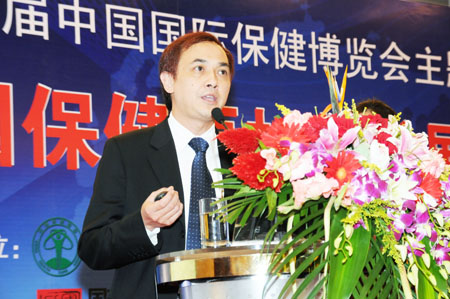 张凤楼理事长为论坛致辞 中国保健协会张凤楼理事长介绍说,截至2008年底,我国已审批保健食品11275个,其中国产保健食品10639个,进口保健食品618个,我国保健食品生产企业1600余家,年产值1000多亿元。但我国保健产业产值约占国民生产总值2%,低于许多发展中国家,更低于发达国家超过15%的比例。近20年来,美国保健品销售量增长了36倍,日本增长了32倍,欧盟各国每年以17%速度增长。因此,我国保健食品产业有巨大的发展空间。但是,科技创新和产品创新不足,直接制约了行业的更好发展。据IMS的一项调查表明,消费者健康意识较强,75%的消费者认为“为了健康比较注意饮食”,一线城市每个家庭在健康方面的年平均支出为3447元。