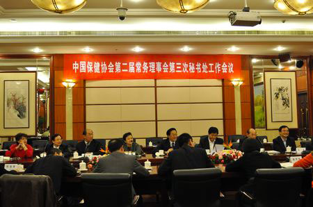 2011年2月27日下午,中国保健协会在世纪金源大饭店同期召开了第二届常务理事会第三次秘书处工作会议。理事长张凤楼、常务副理事长秦小明,副理事长栾成章、副理事长兼秘书长徐华锋、副秘书长贾亚光、周邦勇、李萍、王中、牛忠俊,兼职副秘书长赵新华以及各企业兼职副秘书长潘晓非、刘俊、滕燕华、田春、何雄辉以及新聘任兼职副秘书长张大超、罗蓉、马海亮、吴昌鑫均出席了本次会议。