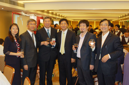 协会副理事长兼秘书长徐华锋一行与国家中医药管理局李大宁副局长、香港现代化 中医药国际协会会长杨国晋先生在大会欢迎晚宴上合影