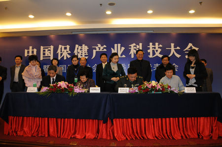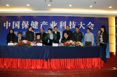 在会上,还举行了科技合作签约仪式:中国科学院过程工程研究所、中国医学科学院药植所、中国人民解放军后勤部军需研究所、中国纺织科学研究院,分别与大连珍奥集团、北京颐寿园蜂产品科技有限公司、北京奇化酶生物科技有限公司、浙江义乌莎亚丽袜业科技有限公司签订了4项科研合作项目协议。