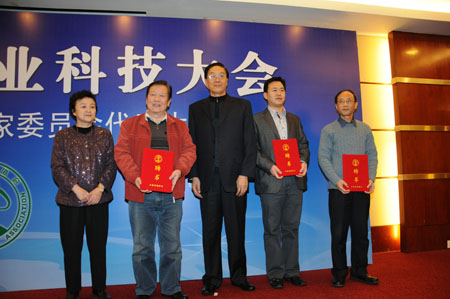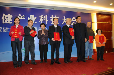 卫生部刘谦副部长在讲话中对保健产业大会给予充分肯定和高度评价,并指出,保健协会在科技成果转化方面要有所突破,大胆创新,加快科研机构和企业之间的良性合作,打造有效的科技服务平台,促进科研成果的产业化、商品化发展,为保健产业的可持续发展做好服务;要求协会专家委员会要遵循市场经济的原则,围绕“一切为了人民群众健康需求的前提,研究和探讨产业发展急需的科研成果,专家委员会要创新观念,倡导服务,探索符合产业发展需求的服务机制,鼓励和引导企业重视科研,在产业内营造科技支撑企业发展的氛围,推动科研院所、专家和企业的交流与合作,让更多的科技成果惠及人民群众的健康生活。 在会上中国保健协会专家委员会主任委员刘德培院士作了题为“发展保健科技,开创产业新局面”的报告。报告深刻分析和阐述了我国保健产业发展现状、存在的问题,探讨未来我国保健产业发展的指导方针、发展目标和总体部署,特别强调“科技是产业发展的支撑和第一推动力”观念,预示中国保健产业将成为我国战略性新兴产业,并提出要组织实施:建立科技创新体系和机制,加大预防保健理论研究建立和完善理论体系的力度,加强保健产品及其原材料、保健方式、服务等质量、安全、功效、技术、标准的研发,建立质控、鉴定、评价等保障体系,建立产学研战略联盟,着力构建产业科技服务平台,着力发展健康食品,着力加强保健用品和保健服务的开发与规范。  张凤楼理事长为刘德培院士颁发主任委员聘书