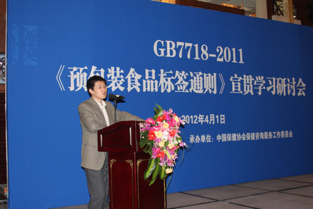为正确理解《预包装食品标签通则》,推动预包装食品标签国家标准的贯彻实施,让各个企业了解标准的规定和内容,合法和正确的编制保健食品的标签和食品的标签,科学准确的向消费者传递产品的相关信息,中国保健协会于2012年4月1日在京举办了《预包装食品标签通则》国家标准宣贯学习研讨会。  中国保健协会常务副理事长秦小明讲话