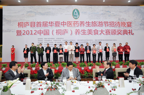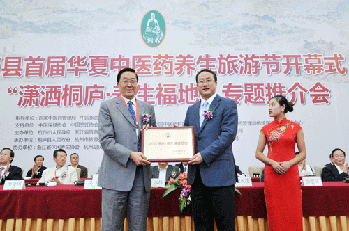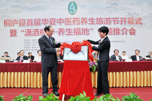 毛溪浩表示,中医药养生旅游产业是新兴产业、朝阳产业,潜力巨大、前景广阔。我们举办首届华夏中医药养生旅游节,就是要积极培育发展养生旅游、医疗旅游等特色旅游产业,通过做足做好“山水”和“中药”两篇文章,进一步打响“桐君故里•养生圣地”品牌,努力把资源优势转化为产业优势,生态优势转化为发展优势,使中医药养生旅游产业成为我县的绿色产业、文化产业、富民产业。同时,要借力节庆综合效应,扩大对外开放、促进交流合作,进一步提升桐庐的知名度、美誉度和影响力,为“一个目标,五大桐庐”建设注入新的活力。最后,他向与会嘉宾发出诚挚邀请,希望大家多来桐庐休闲旅游、养生度假,多来桐庐考察指导、投资创业,共同开创“中国画城•潇洒桐庐”的美好明天。 中国保健协会理事长张凤楼为我县授“中国养生保健基地”牌匾,吴刚为我县授“华夏养生福地”牌匾,县委副书记、县长方毅接牌。浙江中医药大学党委副书记黄文秀和县委副书记吴玉凤共同为浙江中医药大学桐庐教育培训中心揭牌。市卫生局党委书记、局长滕建荣为瑶琳镇舒家村、江南镇环溪村授“杭州市健康单位”牌匾。副县长潘立铭作桐庐休闲养生项目推介。 会上,浙江中医药大学与县人民政府签署战略合作协议;颐高集团有限公司、巨星集团、众安房产有限公司分别与县人民政府签订国际养生中心项目、农业养生综合体项目、小源溪项目协议;杭州柯氏生物科技有限公司与县食品药品监督管理局签订中华中医药文化产业园项目协议;台湾全人健康生医有限公司与县迎春商务区管委会签订养生会所项目;中国医药保健品进出口有限公司、北京美康永正医药有限公司、康美药业有限公司、重庆慧远药业有限公司与杭州桐君堂医药药材有限公司签订桐君堂中医药产品供销项目协议。与会人员还观看了“中国画城•潇洒桐庐”宣传片。